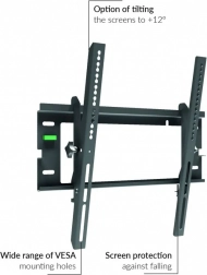 Suportul EWB150 este alegerea ideală pentru montarea sigură și elegantă a televizoarelor și monitoarelor cu ecran plat. Profilul său suplu, cu o distanță de 48 mm față de perete, economisește spațiu, în timp ce funcția de înclinare până la 12° crește confortul vizionării și reduce reflexiile.