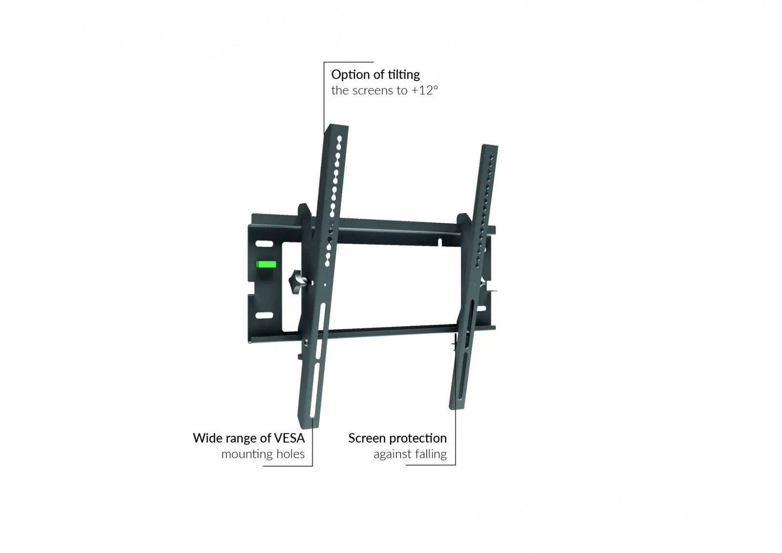 Construcția robustă din oțel asigură fiabilitate și o capacitate de încărcare de până la 40 kg. Datorită compatibilității largi cu standardul VESA, montajul este simplu și rapid, iar nivela integrată ajută la alinierea exactă a suportului.