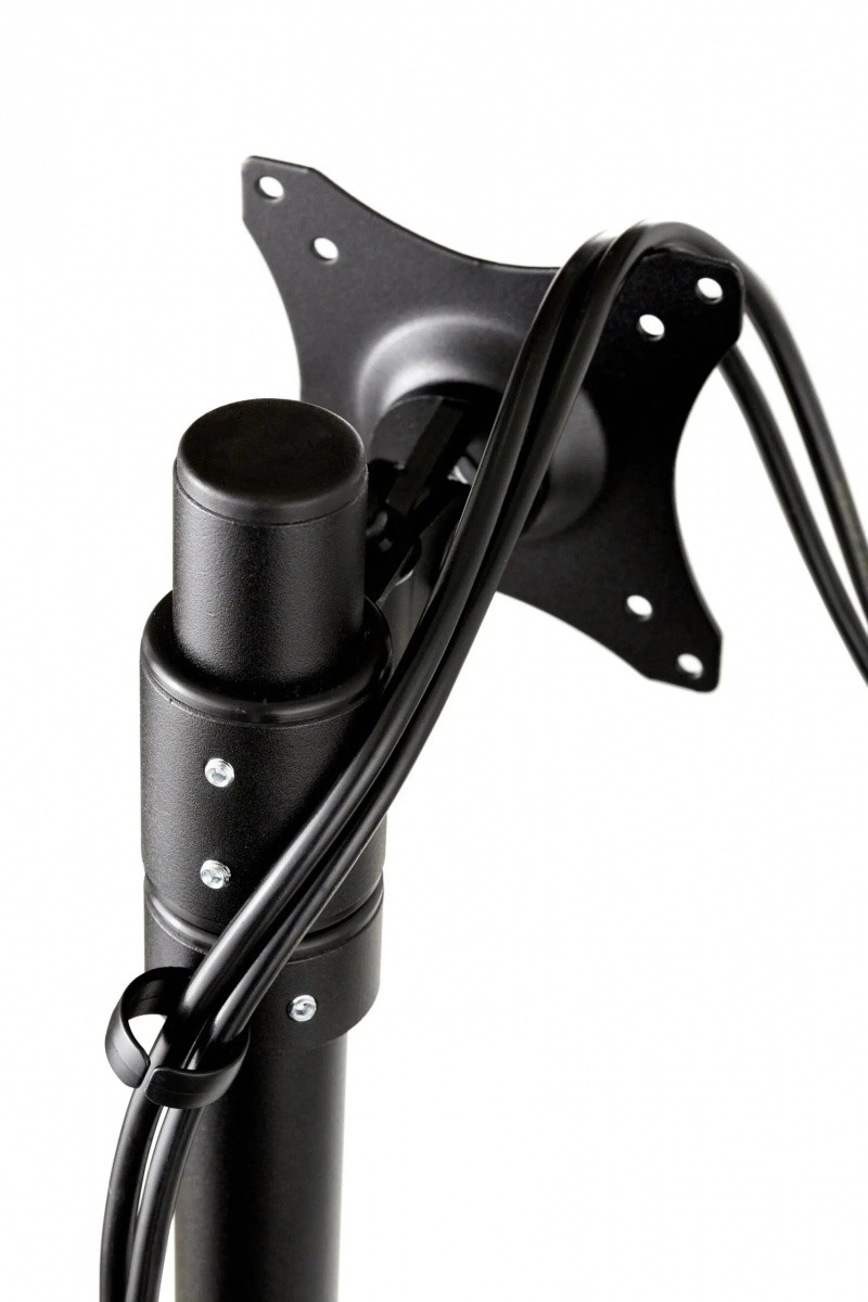 Construcție metalică durabilă cu ghidare a cablurilor care menține monitorul ferm și spațiul de lucru ordonat.