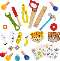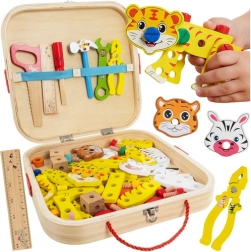 Acest set bogat îmbină joaca și învățarea. Cu ajutorul fierăstrăului, ciocanului, șurubelniței sau cleștilor, copiii înșurubează, îmbină și asamblează piese colorate în animăluțe vesele și mijloace de transport. Susține coordonarea, precizia și orientarea spațială și, în același timp, îi învață bazele construcției.
