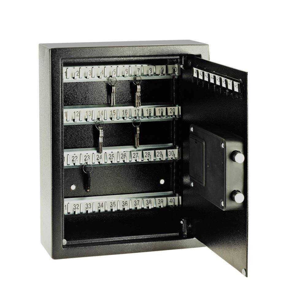 Datorită celor 48 de cârlige cu posibilitatea de ajustare a distanțelor și sistemului de etichete, găsești rapid cheia potrivită. Construcția robustă și încuietoarea fiabilă protejează împotriva accesului neautorizat, iar dimensiunile compacte permit montarea ușoară pe perete.