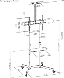 Include un raft central reglabil pe înălțime pentru playere, console sau set‑top boxuri (capacitate 5 kg) și o poliță superioară pentru cameră – perfectă pentru videoconferințe și prezentări. Roțile cu frână permit mutarea lină între încăperi și fixarea stabilă la loc.
