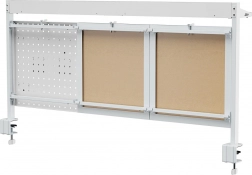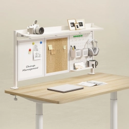 Îmbunătățiți-vă spațiul de lucru cu o suprastructură multifuncțională care unește trei tipuri de zone de organizare într-o soluție compactă. Clemele metalice stabile fixează ferm sistemul de blatul biroului, astfel montajul este rapid și fără găurire. Ideală pentru birou acasă, atelier sau studio.