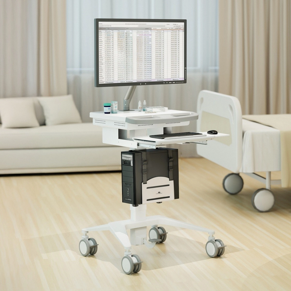 Montarea PC-ului pe perete sau sub blat eliberează spațiul de sub birou, îmbunătățește fluxul de aer și facilitează accesul la porturi și cabluri.