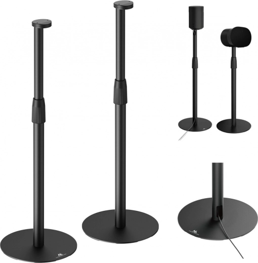 Finisajul minimalist, negru, se potrivește atât în interioare moderne, cât și clasice. Canalul integrat pentru cabluri în interiorul suportului ascunde eficient cablarea, evitând aspectul dezordonat în jurul difuzoarelor. Montajul este simplu și rapid, tot ce aveți nevoie se află în pachet.