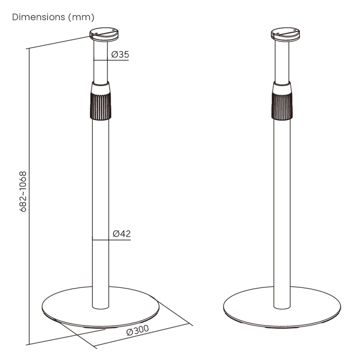 Suporturile de podea MC-496 sunt proiectate pentru poziționarea perfectă a difuzoarelor SONOS ERA 100 și ERA 300. Datorită reglajului telescopic al înălțimii, setați ușor nivelul optim de ascultare și direcționarea sunetului. Baza din oțel robustă și coloana solidă asigură stabilitate fără vibrații nedorite.