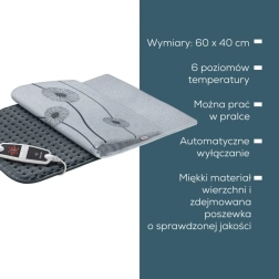 Perna este fabricată din material fin și respirabil, plăcut la atingere. Siguranța este asigurată de sistemul de siguranță Beurer, cu monitorizare continuă a temperaturii și oprire automată după 90 de minute.