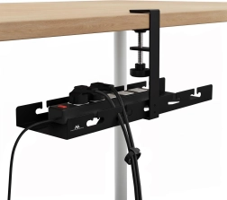 Organizerul de cabluri montat sub birou este o soluție inteligentă pentru oricine își dorește un cablaj curat și sigur, fără încurcături sub picioare. Datorită prinderii cu clemă (C-clamp), îl fixați pe marginea blatului în câteva clipe, fără nicio găurire. Fantele și trecerile integrate ușurează ghidarea conductorilor și montarea benzii/prelungitorului chiar sub blat.