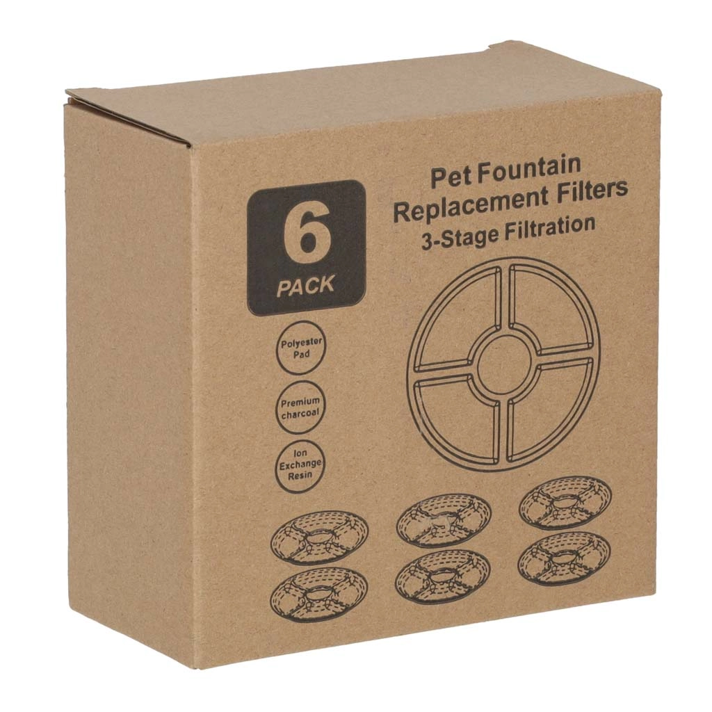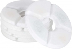 Acest set conține 6 filtre circulare concepute pentru fântâni pentru animale. Datorită combinației de cărbune activ și rășină schimbătoare de ioni, îmbunătățesc gustul și calitatea apei, reduc mirosurile și rețin particulele fine. Înlocuirea regulată a filtrului sprijină un consum mai bun de apă al animalului dvs. și ajută la menținerea fântânii în stare perfectă.