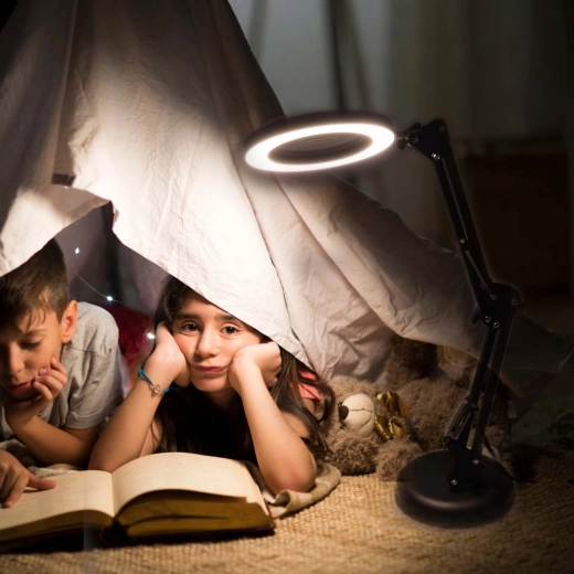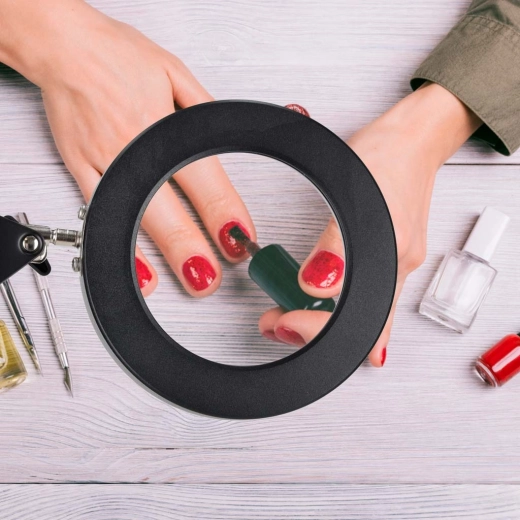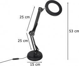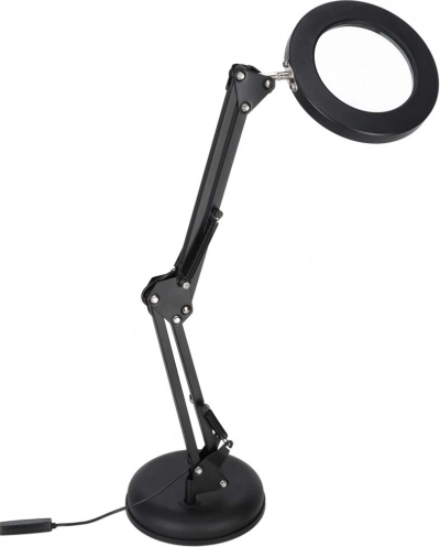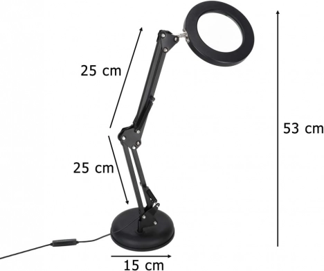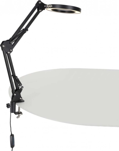 Această lampă LED neagră, elegantă, combină iluminarea cu lupă x3 într-un singur produs, fiind ideală pentru modelism, cusut, electronică, meșteșuguri și pentru citirea textelor mici. Inelul LED circular asigură lumină uniformă, neorbitoare cu redare fidelă a culorilor (CRI > 80), astfel încât detaliile să fie vizibile clar și confortabil.