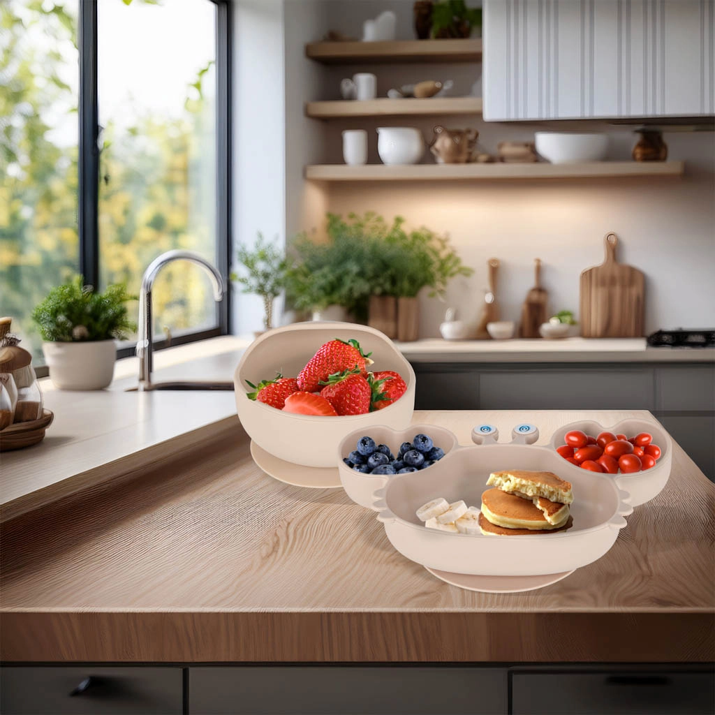 Ventuza din silicon fixează bine vesela pe masă și reduce curățenia după fiecare masă.