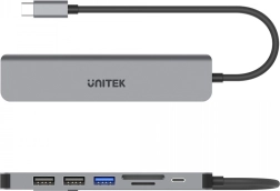 Extindeți posibilitățile dispozitivului dvs. cu USB‑C folosind hubul universal 7‑în‑1. Conectați simultan tastatura, mouse‑ul, discul extern, cardul din aparat foto și un monitor 4K – totul printr‑un singur port. Datorită Power Delivery 100 W passthrough puteți lucra și încărca laptopul în același timp, fără compromisuri.