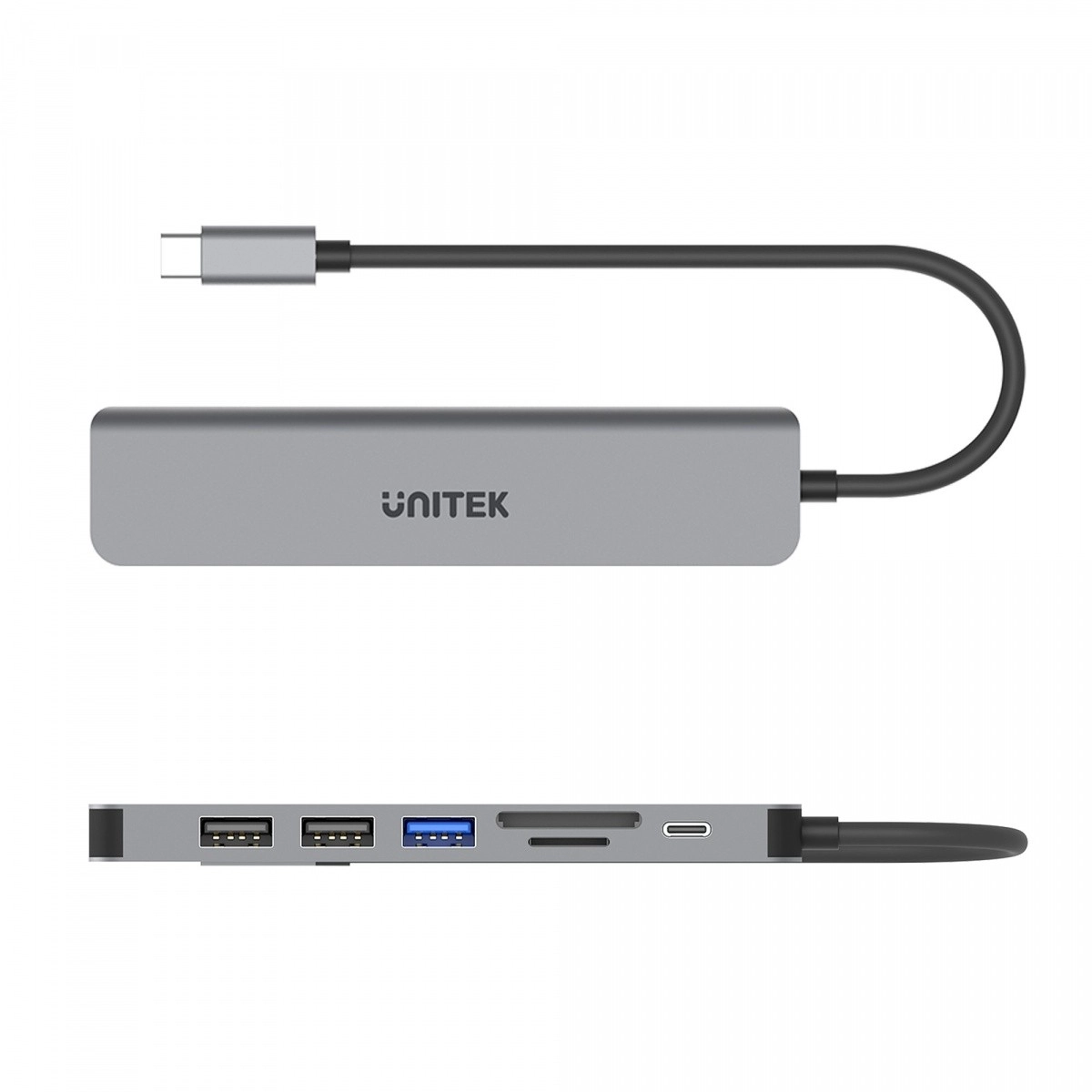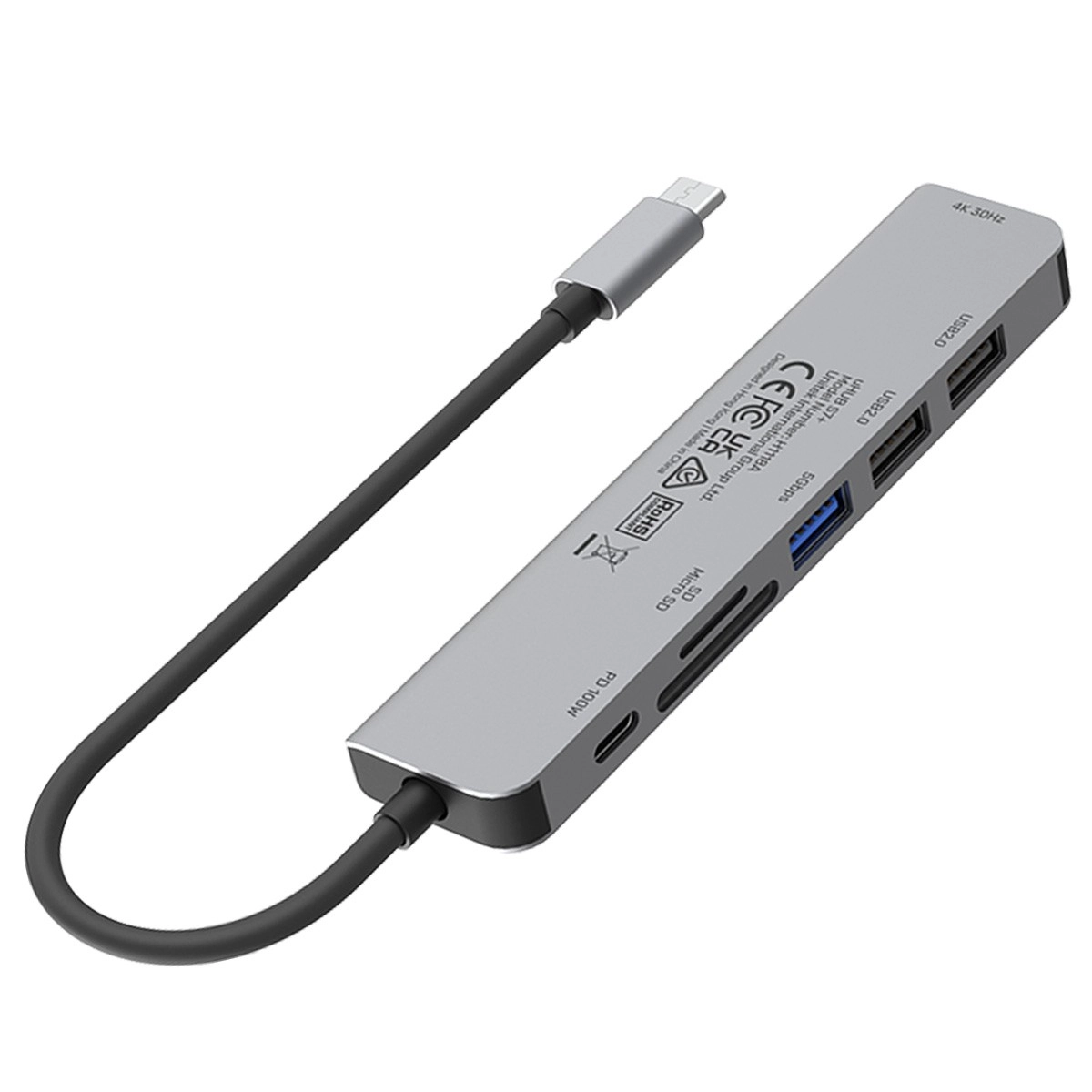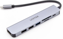 Hub USB-C 7‑în‑1 compact și performant pentru laptopuri și tablete moderne. Oferă HDMI 4K (30 Hz), porturi USB rapide până la 5 Gbps, cititor SD/microSD și Power Delivery 100 W passthrough. Carcasa elegantă din aluminiu și cablul integrat de 15 cm asigură utilizare comodă și fiabilă acasă și în deplasare.