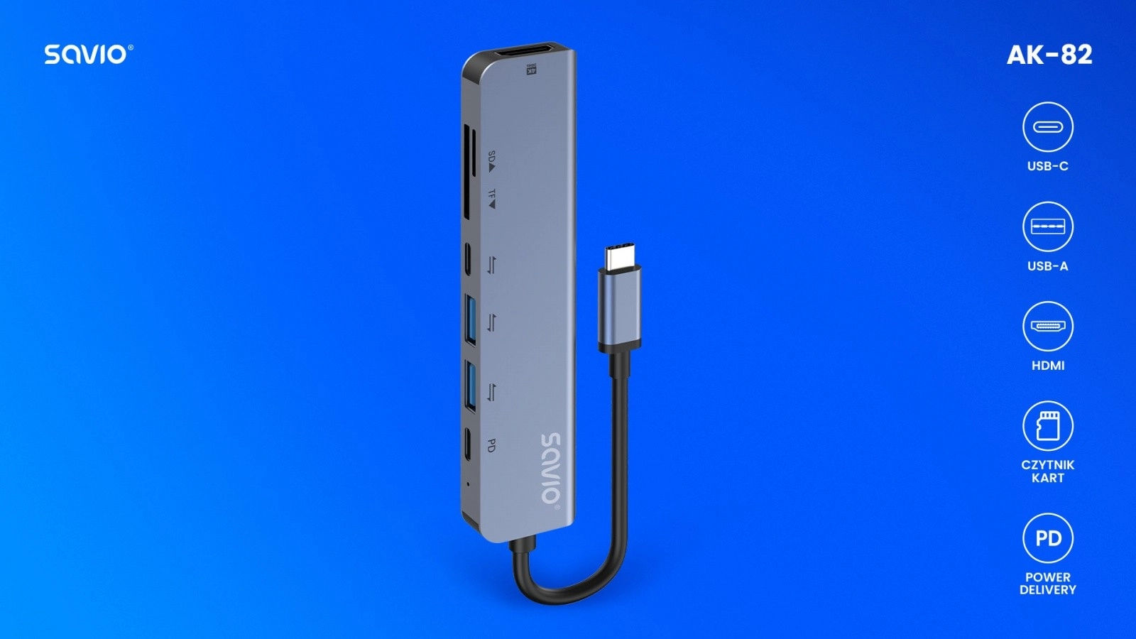 Savio AK‑182 extinde dispozitivul dvs. cu șapte interfețe practice fără a mai necesita adaptoare suplimentare. Prin HDMI conectați ușor un monitor, proiector sau TV cu suport 4K la 30 Hz pentru o imagine clară fără întârzieri. Două porturi USB‑A asigură compatibilitatea cu accesoriile – unul pentru transfer rapid de date, celălalt pentru mouse, tastatură sau imprimantă.