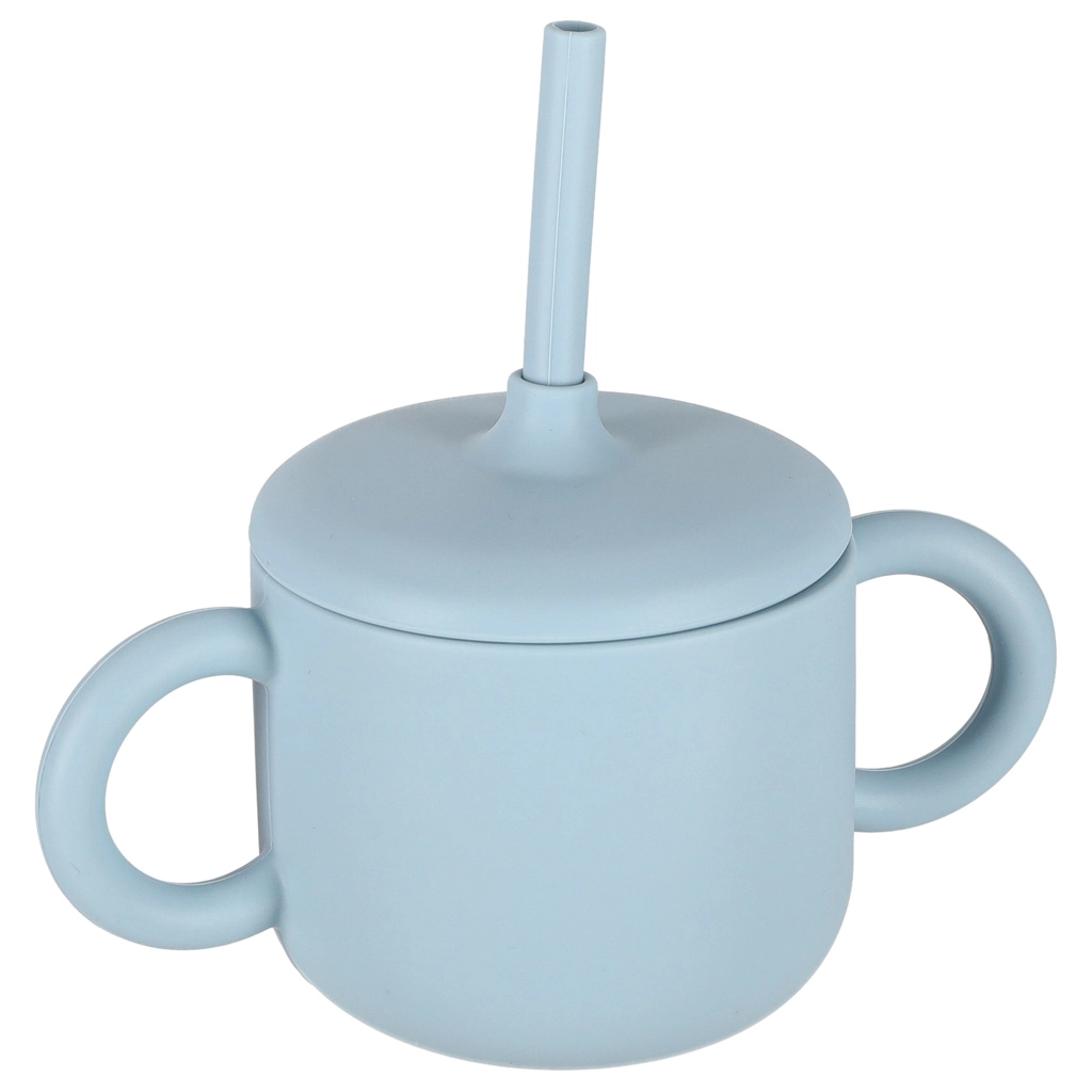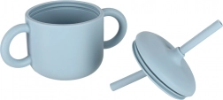 Cană din silicon cu două mânere, capac și pai integrat, care facilitează trecerea de la biberon. Suprafața moale nu alunecă și este delicată pentru mânuțele mici.