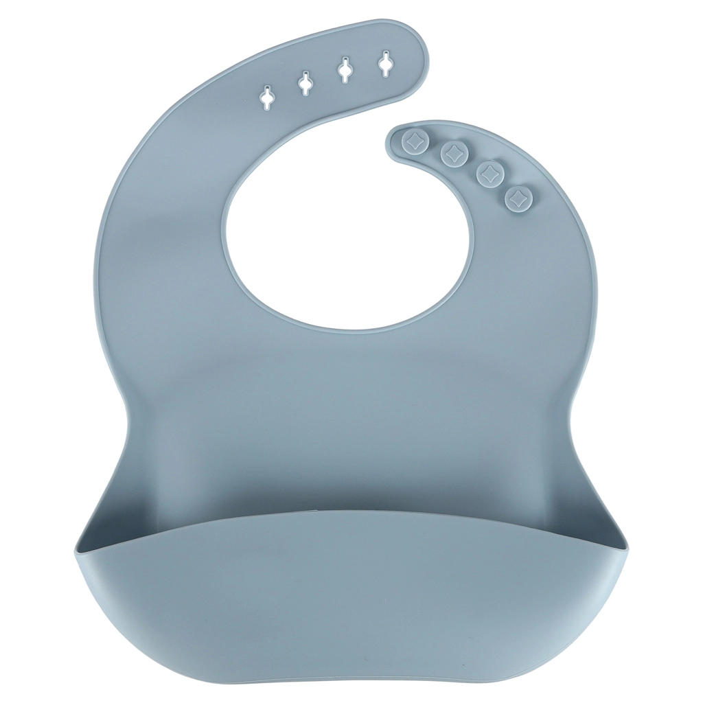 Bavețica din silicon moale, cu închidere pe mai multe trepte, „crește” odată cu copilul. Buzunarul adânc colectează firimiturile și lichidele, astfel hainele rămân curate, iar curățenia se face rapid.