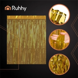 Cortina ușoară din folie PET lucioasă se mișcă delicat la fiecare adiere de aer și creează o interesantă joacă de lumină și mișcare. Este excelentă ca fundal pentru fotografii, decorațiune de intrare sau decor pentru scenă și vitrine. Instalare minimalistă – dezlipești, presezi și gata.