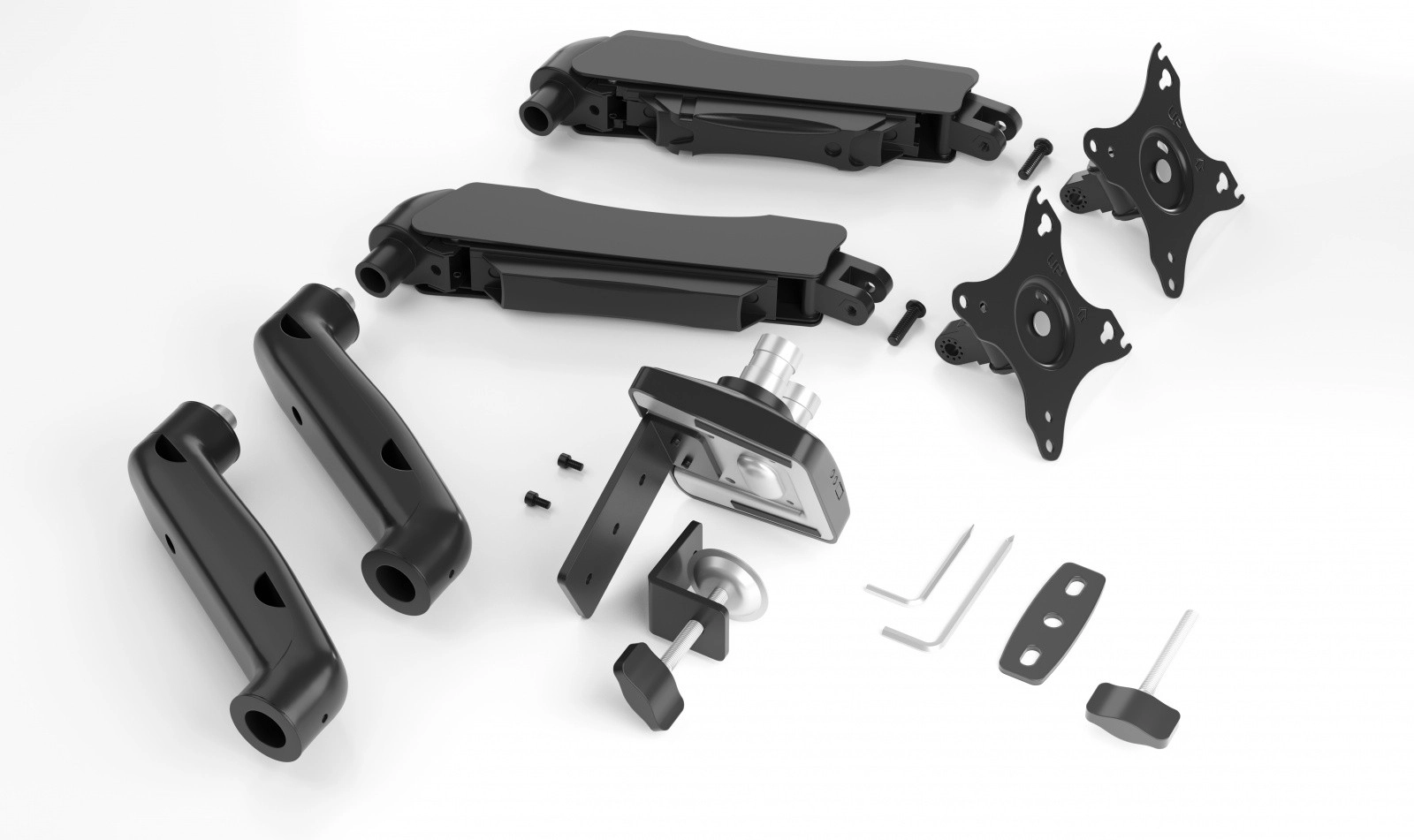 - Economisire de spațiu – două monitoare pe brațe eliberează prețioasa suprafață a biroului.