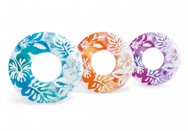 Bucură-te de vară cu colacul gonflabil INTEX cu diametrul de 91 cm, cu model floral hawaiian. Material rezistent, plutire confortabilă și distracție în piscină și la mare pentru copii de la 9 ani.