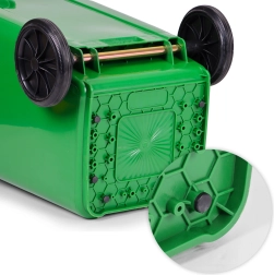 Pentru deplasare facilă, containerul dispune de roți din cauciuc pe ax metalic și mânere ergonomice cu profil antiderapant. Picioarele de stabilizare limitează alunecarea pe suprafețe umede și protejează pardoseala împotriva zgârierii. Recipientul este pe deplin compatibil cu vehiculele de salubritate conform EN 840, iar datorită standardelor ISO9001, ISO14001, ISO45001 îndeplinește cerințele ridicate de calitate și siguranță.
