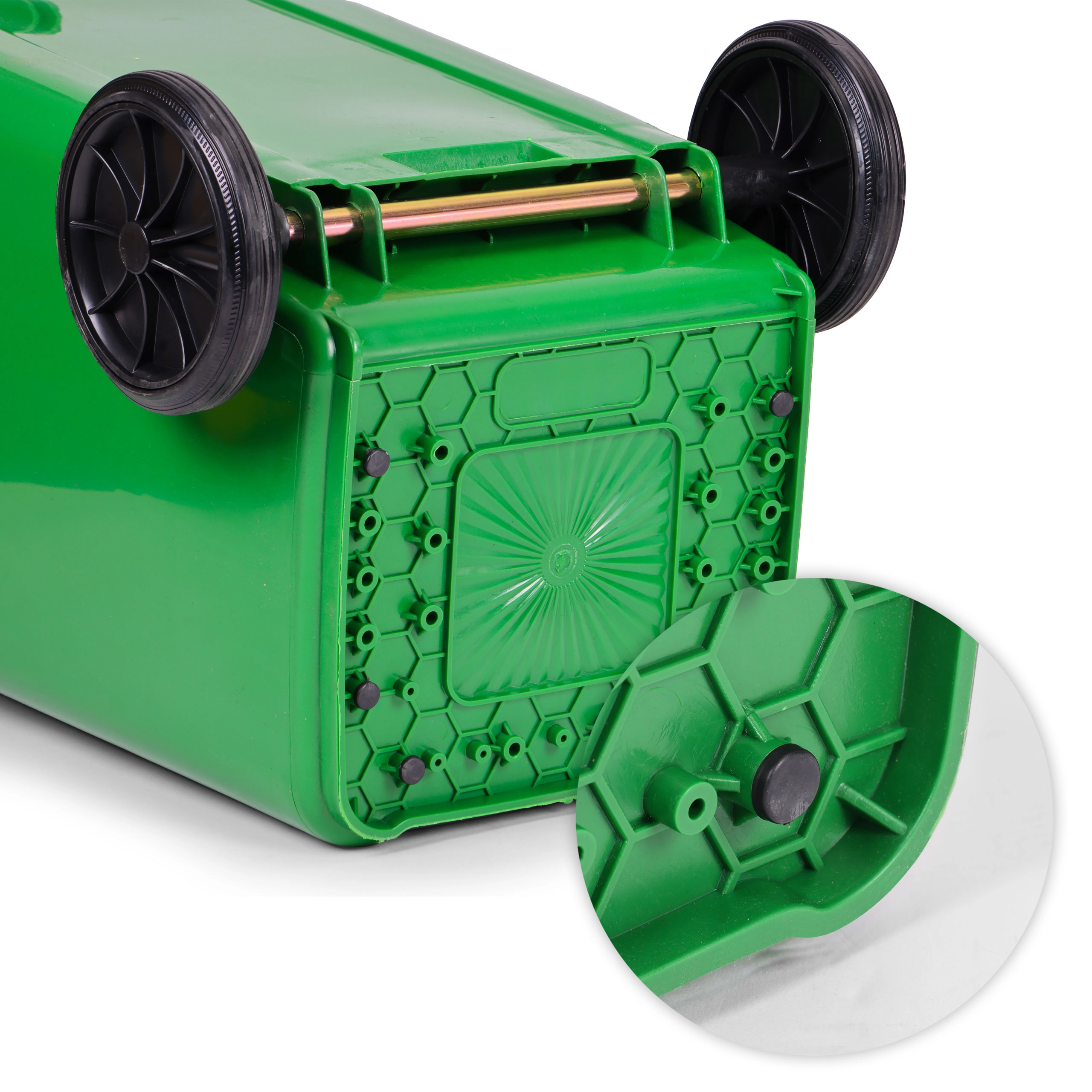 Ordinea în colectarea selectivă a deșeurilor este mai ușor de menținut cu containerul verde pentru sticlă de 120 l. Corpul robust din HDPE rezistă la radiații UV, substanțe chimice și impacturi, fiind ideal pentru utilizare zilnică atât în exterior, cât și în interior. Capacul etanș împiedică pătrunderea ploii și scăparea mirosurilor, menținând împrejurimile curate și fără efecte nedorite.