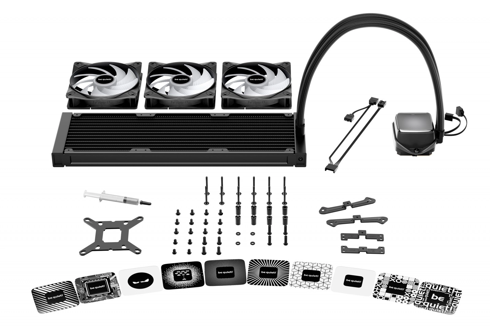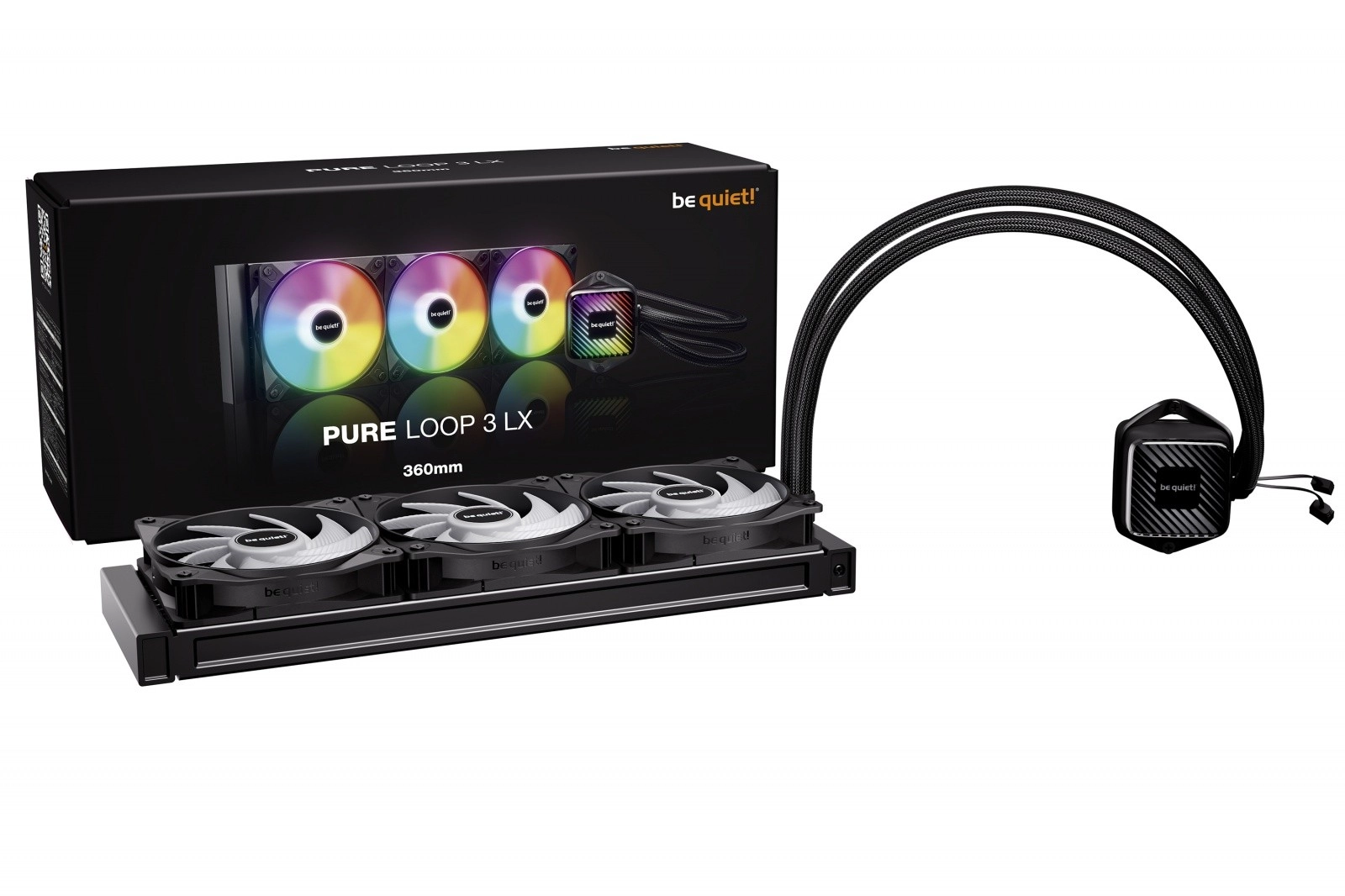 Pure Loop 3 LX 360 mm combină designul ingenios cu răcirea maximă. Blocul ARGB elegant cu 10 folii incluse oferă opțiuni largi de personalizare a aspectului. Trio‑ul de ventilatoare Light Wings LX 120 mm PWM high‑speed cu 16 LED și pale optimizate pentru flux asigură performanță ridicată și zgomot redus, în timp ce orificiile tip pâlnie maximizează circulația aerului prin radiatorul dens cu lamele de 360 mm.