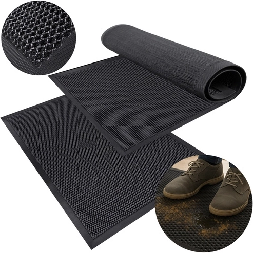 Stratul inferior antiderapant asigură aderență fermă la podea și un pas sigur. Covorașul este potrivit pentru utilizare la interior și exterior, se clătește ușor cu apă sau se aspiră. Culoarea neagră universală se potrivește în orice spațiu și nu evidențiază imediat murdăria.