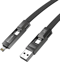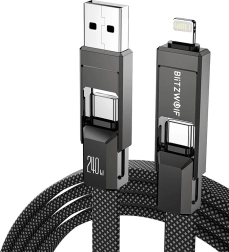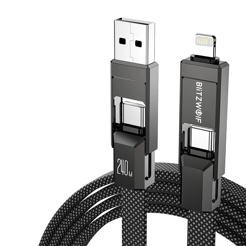 Cablul universal 4 în 1 de la BlitzWolf combină conectorii USB‑A, USB‑C și Lightning pentru încărcare rapidă și transfer de date. Suportă până la 240 W (USB‑C ↔ USB‑C), încărcare rapidă PD pentru iPhone până la 27 W și transfer de date de până la 480 Mb/s. Împletitura durabilă din nylon și lungimea de 1,2 m asigură o durată de viață îndelungată și utilizare confortabilă acasă, la birou și în călătorii.