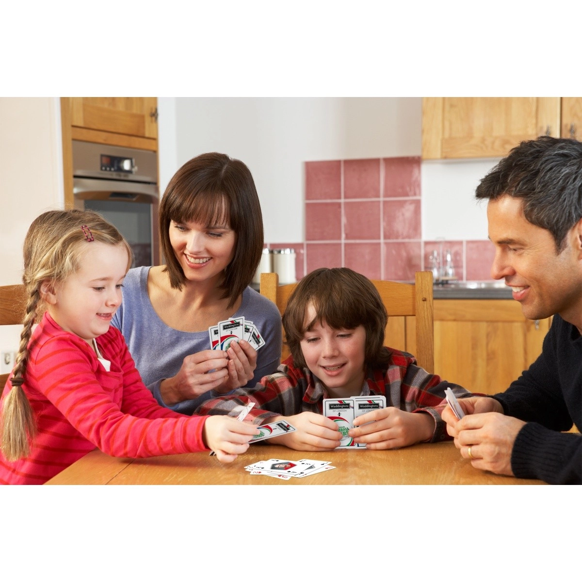 Acest set emblematic de la brandul britanic WADDINGTONS aduce jocurile de cărți clasice într-un stil fotbalistic atrăgător. Datorită execuției atente, cărțile își păstrează forma chiar și după multe partide, fie că jucați război, jokkeri, poker sau 21.