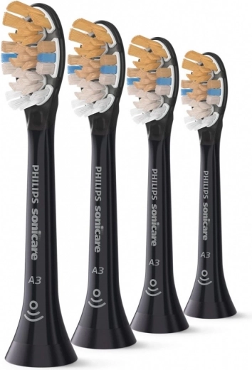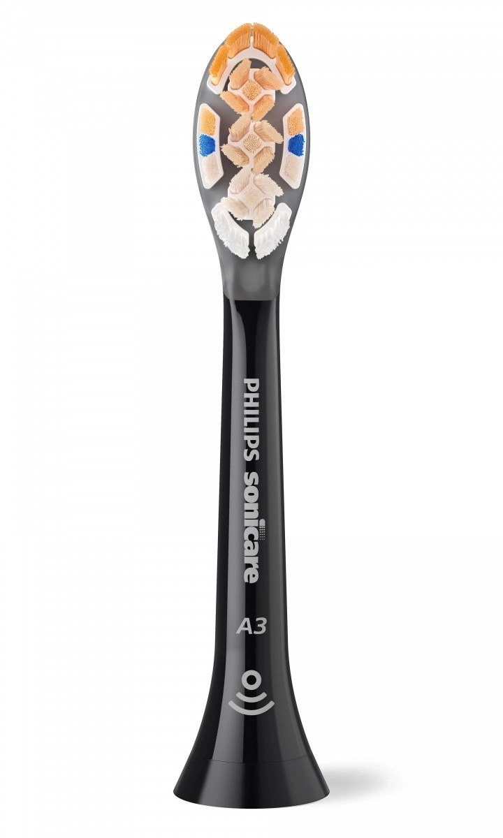 Capetele Sonicare A3 All‑in‑One combină tehnologia sonică avansată și forma gândită a perișorilor pentru curățare în profunzime chiar și în zonele greu accesibile. Zonele triunghiulare și multicolore ale perișorilor cresc suprafața de contact și îndepărtează mai eficient pigmentațiile și depunerile, în timp ce perișorii laterali extra‑lungi îngrijesc linia gingivală.