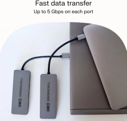 Datorită vitezei de transfer de până la 5 Gb/s pe fiecare port, veți reuși copierea rapidă a fișierelor mari, sincronizarea fluentă a datelor și lucrul eficient cu mai multe dispozitive simultan. Cablu integrat (15 cm) asigură o conectare comodă fără încurcături inutile de cabluri, în timp ce șasiul din aluminiu oferă durabilitate și un aspect elegant.