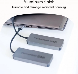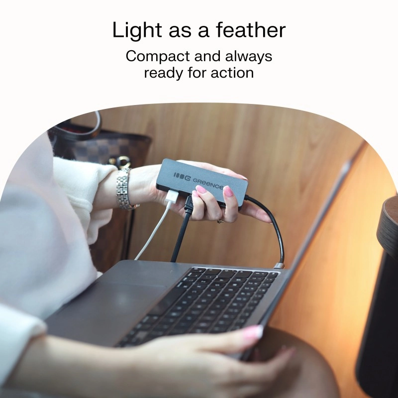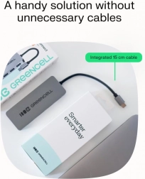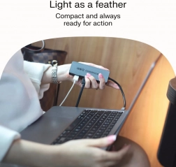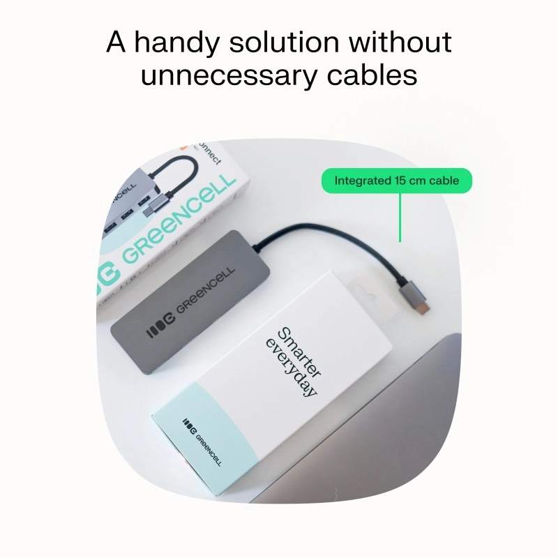 Carcasa compactă din aluminiu este rezistentă și se potrivește excelent cu laptopurile moderne. Cablu integrat (15 cm) pentru un birou ordonat, iar hubul încape ușor în buzunar sau geantă – ideal pentru lucru mobil.