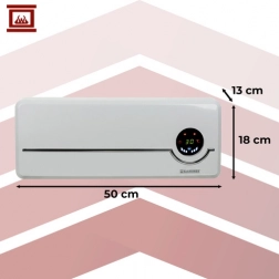 Cortina de aer de perete KAMINER AIRO, cu putere de 1000/2000 W, încălzește rapid încăperea și, datorită controlului Wi‑Fi și telecomenzii, oferă confort maxim. Dispune de temporizator 24h, programator săptămânal, mod ECO, protecție la supraîncălzire și blocare pentru copii. Elementul de încălzire ceramic PTC asigură încălzire sigură, economică și rapidă.