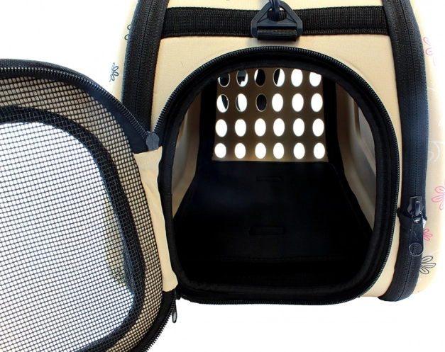 Geantă de transport de înaltă calitate pentru animale de companie de mici dimensiuni. Este ideală pentru transportul animalelor mici pe orice distanță. Construcția extrem de confortabilă asigură comoditate atât pentru noi, cât și pentru animal. Materialul rezistent din care este realizat suportul și mânerul solid, precum și cureaua de umăr reglabilă, garantează o utilizare îndelungată și fără probleme a produsului. Geanta este aerisită și sigură pentru animalul nostru datorită sistemului de ventilație. Utilizarea confortabilă este asigurată și de fermoarul dublu pe ambele părți ale transportorului.
