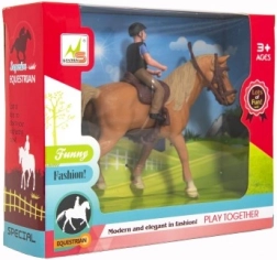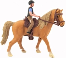 Acest set realist include un jocheu în echipament de călărie cu cască și un cal cu coamă fixă, zăbală și șa. Datorită dimensiunii compacte de 15 cm, este ideal pentru joacă acasă sau în călătorii și susține excelent imaginația și dezvoltarea motricității fine.