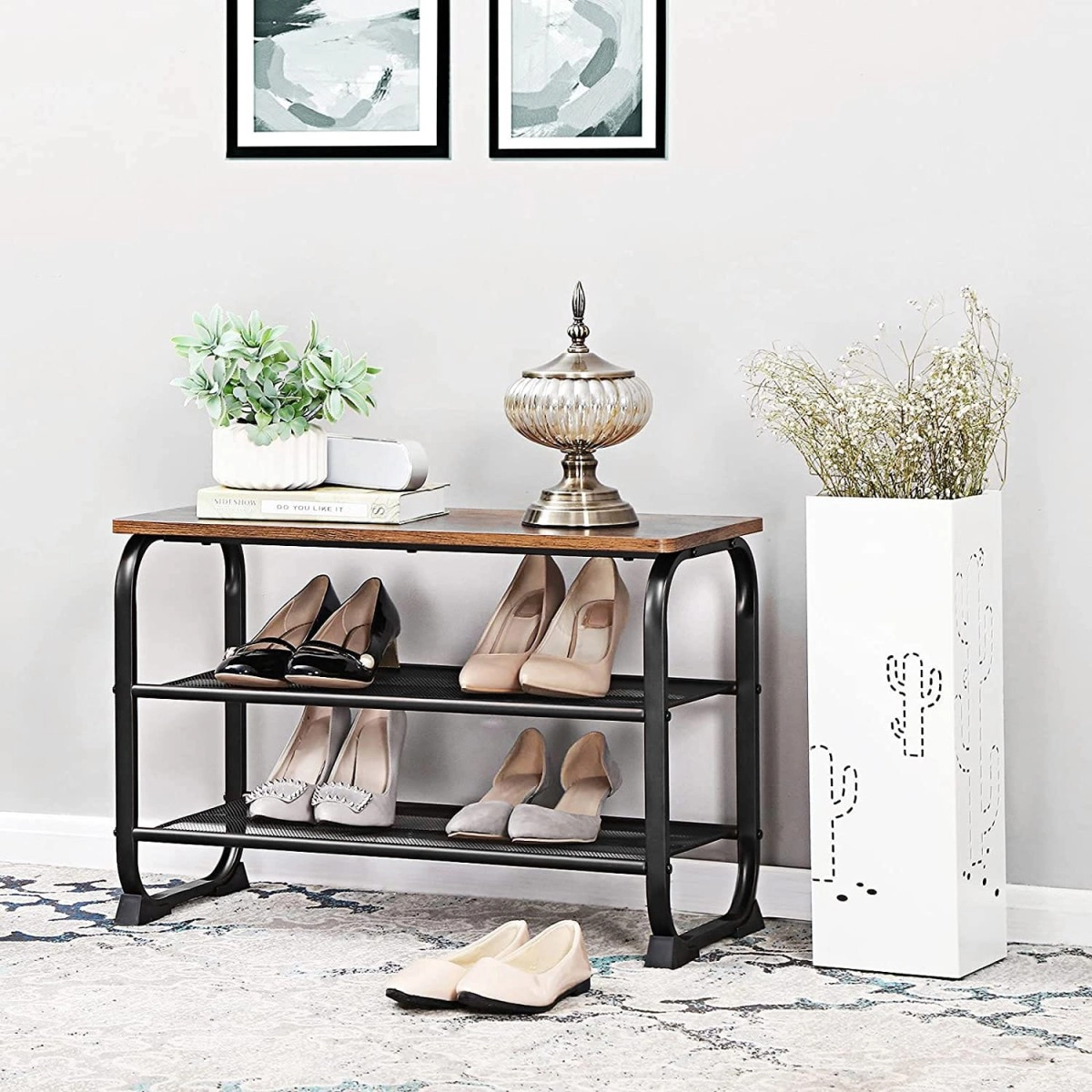 Rafturile din plasă îmbunătățesc circulația aerului, împiedică depunerea murdăriei și păstrează încălțămintea organizată.