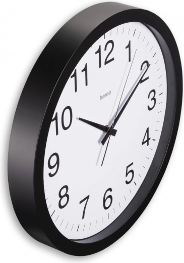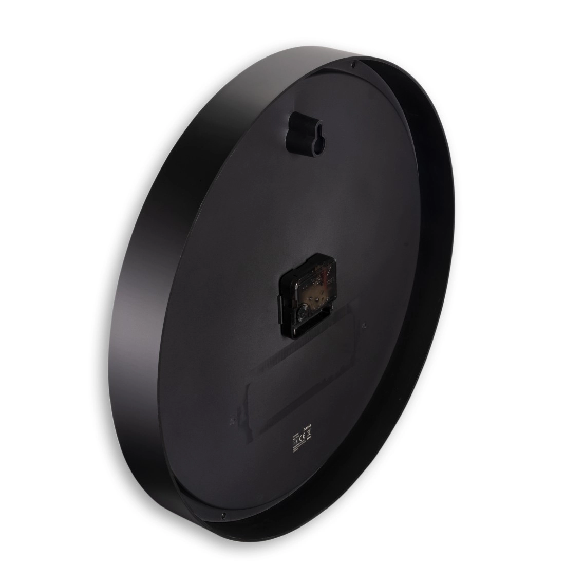 Elegantul ceas de perete cu diametrul de 40 cm, în finisaj negru, impresionează prin estetica minimalistă și lizibilitatea excelentă. Datorită mecanismului cu cuarț și cadranului analogic cu suprafață mare albă și cifre arabe, oferă oră precisă și claritate remarcabilă. În pachet găsiți tot ce este necesar pentru utilizare imediată, inclusiv baterie AA și manual de utilizare.