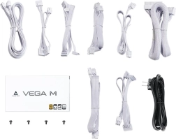 Sursa PC CHIEFTEC VEGA M 750W în culoare albă, stilată și performantă, oferă standardul ATX 12V 3.1, suport PCIe GEN5, eficiență 80 PLUS Gold și cablare complet modulară cu cabluri albe lungi. Datorită topologiei LLC Half-Bridge cu DC-to-DC și ventilatorului silențios FDB de 135 mm, asigură alimentare stabilă, eficiență ridicată și zgomot redus.
