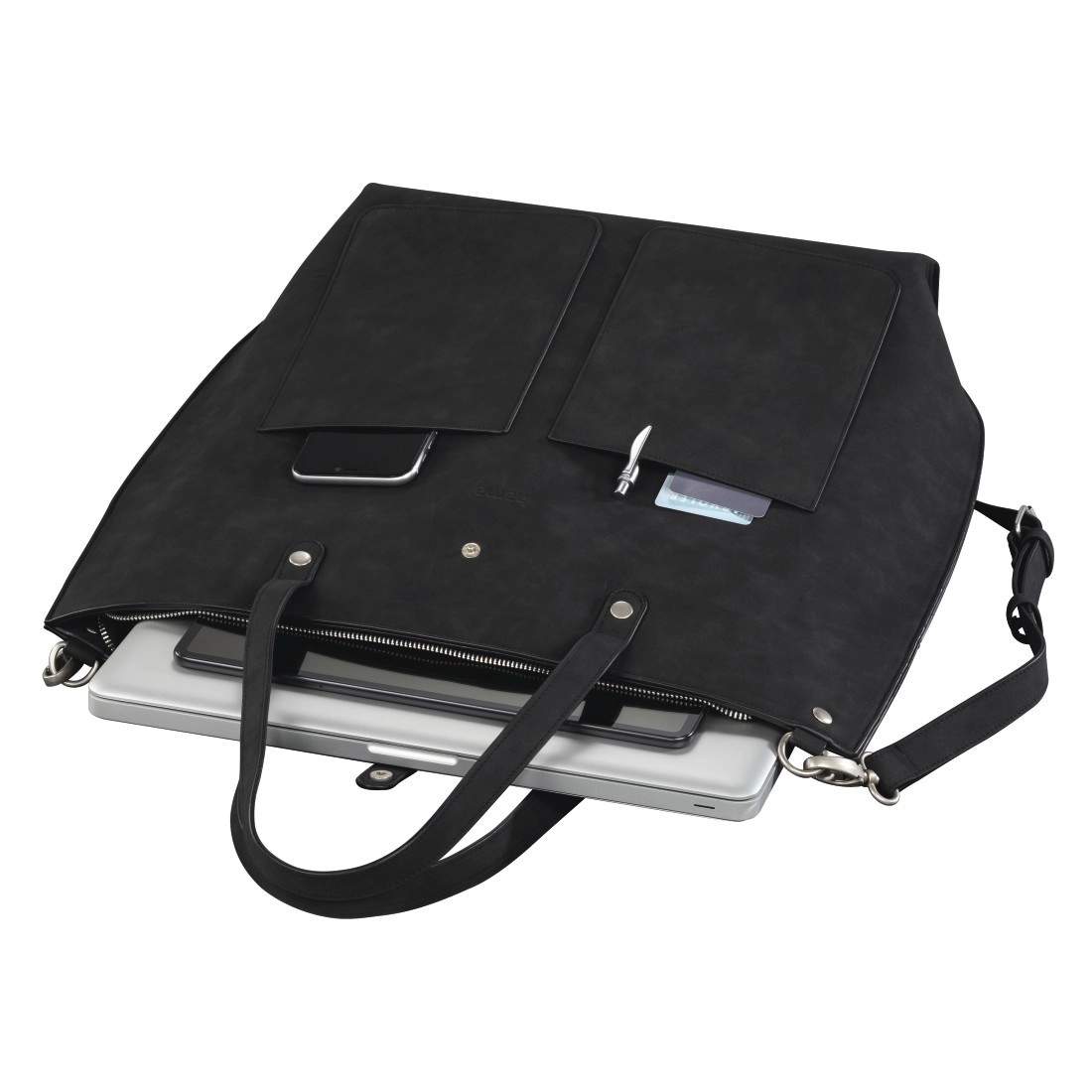 Spațiul principal include un buzunar capitonat pentru laptop de 13.3–14.1″ cu bandă de fixare cu scai, un compartiment separat pentru tabletă de până la 28 cm (11″) și un organizator practic pentru accesorii. Cureaua de umăr detașabilă și reglabilă pe lungime asigură confort la purtare în zilele aglomerate.