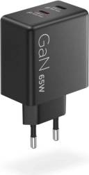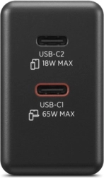 Profitați de puterea de 65 W oferită de tehnologia modernă GaN, care asigură o eficiență mai mare, o încălzire redusă și dimensiuni compacte. Două porturi USB‑C permit încărcarea, de exemplu, a unui laptop și a unui smartphone în același timp – inteligent și fără compromisuri.