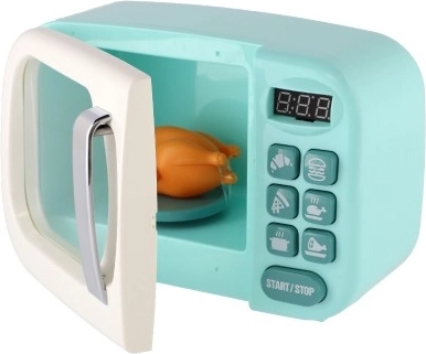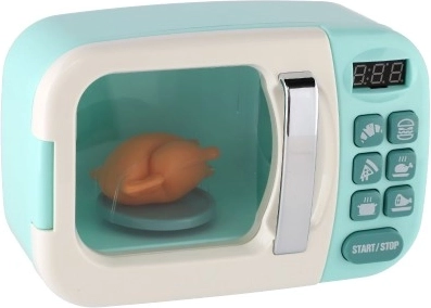 Cuptorul cu microunde simulează funcții reale cu efecte sonore și luminoase realiste și un pui rotativ.