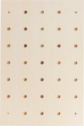 Placa cu o rețea de orificii deasă permite schimbarea rapidă a dispunerii diblurilor și rafturilor exact după nevoile curente – de la chei și ochelari până la accesorii pentru birou.