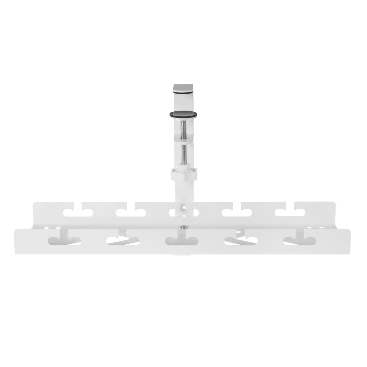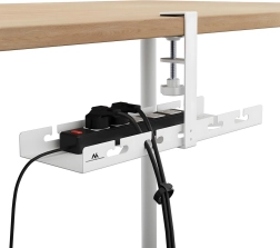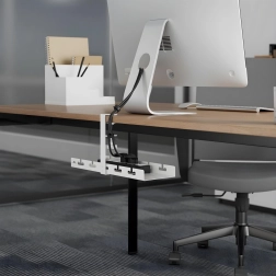 Organizatorul practic montat sub blatul mesei, cu lungimea de 40 cm, ajută la gestionarea cablurilor de la monitor, încărcătoare și accesorii, eliberând spațiu pe blat. Clema de prindere permite montaj fără găurire, astfel încât mobilierul rămâne neafectat, iar organizatorul poate fi mutat oricând.