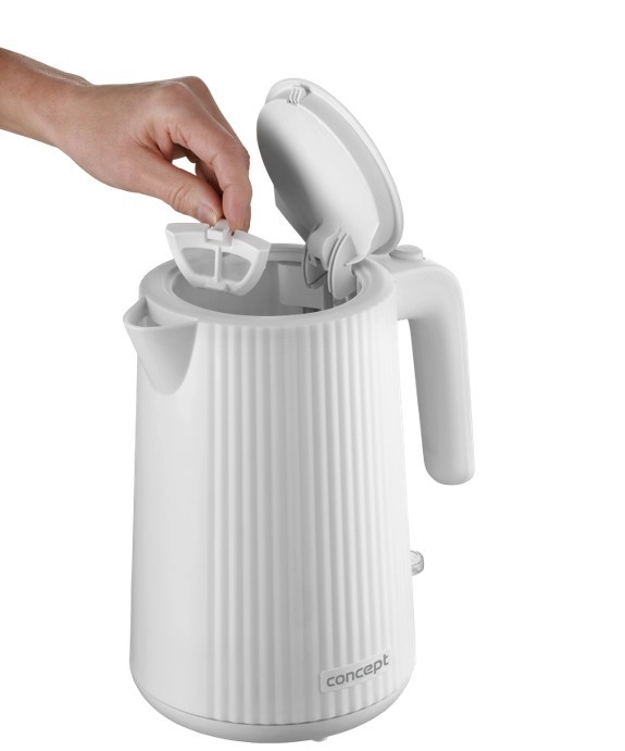 Pentru durabilitate și siguranță, ceainicul este echipat cu conectorul britanic de calitate STRIX. Rezistența integrată cu fund ascuns ușurează curățarea și reduce depunerile de calcar. Dotările practice includ buton pentru deschiderea ușoară a capacului, filtru detașabil împotriva depunerilor și bază rotativă la 360° cu spațiu pentru depozitarea cablului de alimentare.