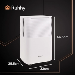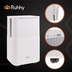 RUHHY DRYZIX este un dezumidificator cu condens proiectat pentru absorbția eficientă a umidității, cu o capacitate de 12 l/24 h. Higrometrul și higrostatul integrate mențin nivelul de umiditate setat, în timp ce dezghețarea automată protejează elementele de răcire împotriva înghețului și asigură o funcționare stabilă chiar și la temperaturi mai scăzute.