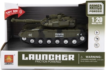 Tancul realist din plastic pentru micii soldați va încânta orice fan al tehnicii militare. Datorită mecanismului inerțial, efectelor luminoase și sunetelor, oferă un joc dinamic plin de aventură. Bateriile sunt incluse în pachet, astfel încât distracția poate începe imediat.