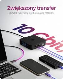 Construiește-ți o stație de lucru profesională cu dock-ul IB-DK4090-C. Suportul pentru până la trei monitoare 4K@60 Hz oferă o imagine excepțional de clară și un multitasking fluid. Două porturi USB‑C cu viteză de transfer de 10 Gb/s asigură mutarea rapidă a datelor și conectarea perifericelor moderne, în timp ce alimentarea passthrough PD de până la 100 W menține laptopul încărcat în timpul muncii.