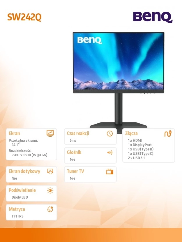 BENQ SW242Q aduce imagine precisă în fluxul dvs. creativ de lucru. Diagonala de 23,8" în combinație cu rezoluția 2K asigură detalii clare, iar redarea fidelă a culorilor este apreciată la editarea fotografiilor și la printare. Timpul de răspuns de 5 ms oferă afișare fluidă fără estompare deranjantă.