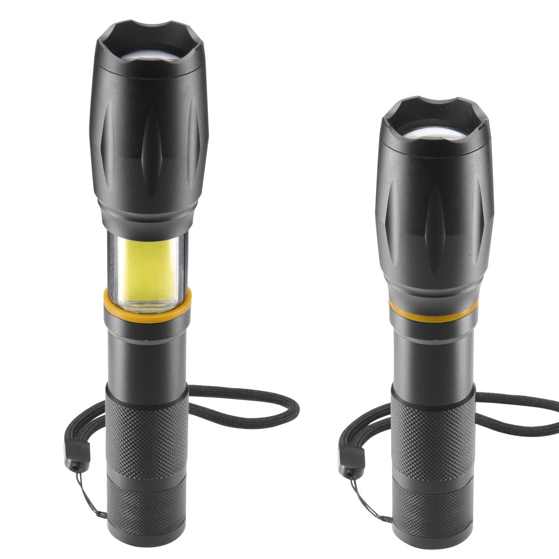Această lanternă de buzunar versatilă combină LED-ul frontal puternic cu un panou lateral COB LED pentru flexibilitate maximă. Poți alege cu ușurință lumină puternică, difuză sau intermitentă, în timp ce lentila cu zoom îți permite să direcționezi precis fasciculul după nevoie. Corpul texturat, cu finisaj antialunecare, și cureaua de mână asigură priză sigură și transport confortabil.