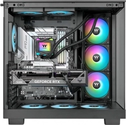 Trei ventilatoare de 120 mm cu până la 2500 rpm oferă un flux de aer puternic și răcire excelentă chiar și în timpul jocurilor solicitante sau al randării. Iluminarea RGB adresabilă adaugă un aspect atractiv configurației.